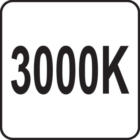 Fehér, meleg fényű, 3000K színhőmérsékletű világítás.