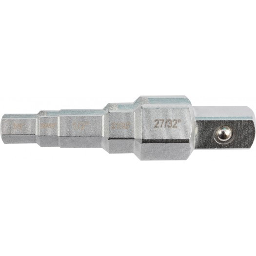 3/8"-os lépéskulcs (9,6 mm) / 29/68" (11,6 mm) / 1/2" (12,6 mm) / 21/32" (16,4 mm) / 27/32" (21 mm), 1/2"-os meghajtóval, kiváló minőségű CRV acélból. Mindkét oldalán van egy-egy bevágás, amelyet a csavarcsavarok számára alakítotIGEN ki.
