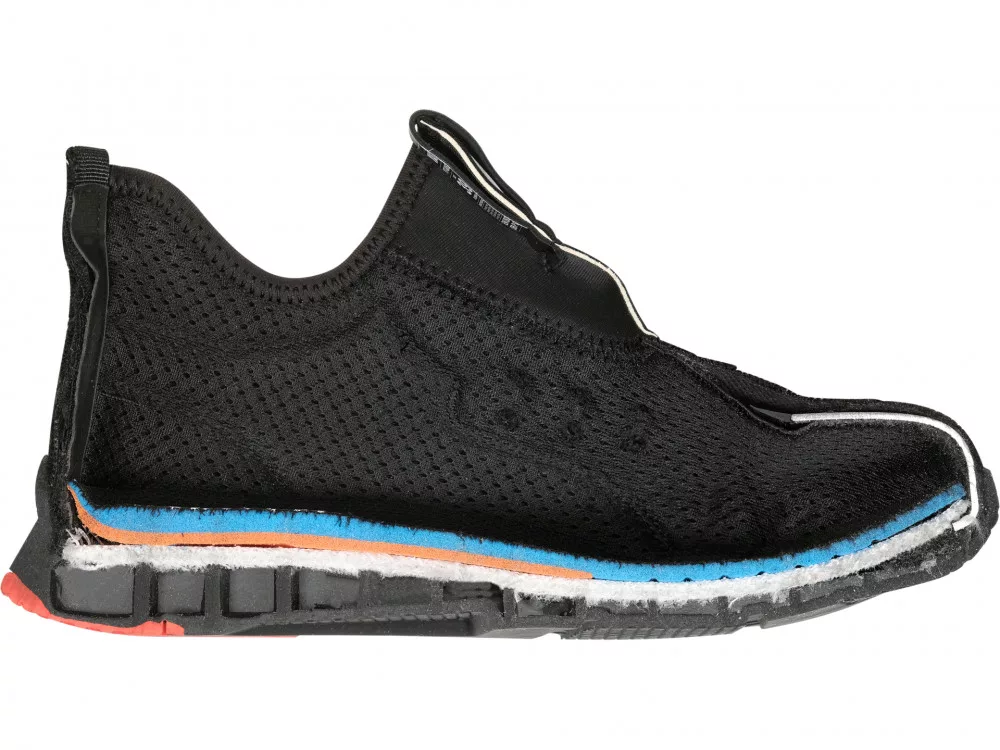 Mind a gumitalp, mind a habbetét, mind a karcolásgátló talp rugalmas, és - a hagyományos PU talppal és acélbetéttel ellátott cipőkkel ellentétben - nem korlátozza a lábközép hajlékonyságát. A lábfej, különösen a lábujjak védelmét az ütésálló acél talpbetét teszi teljessé.