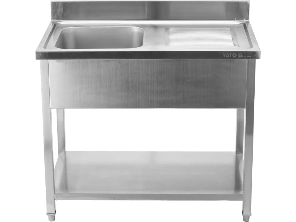 YATO Rozsdamentes inox gasztro munkaasztal mosogatóval, 1000 x 600 x 850 mm (YG-30900)