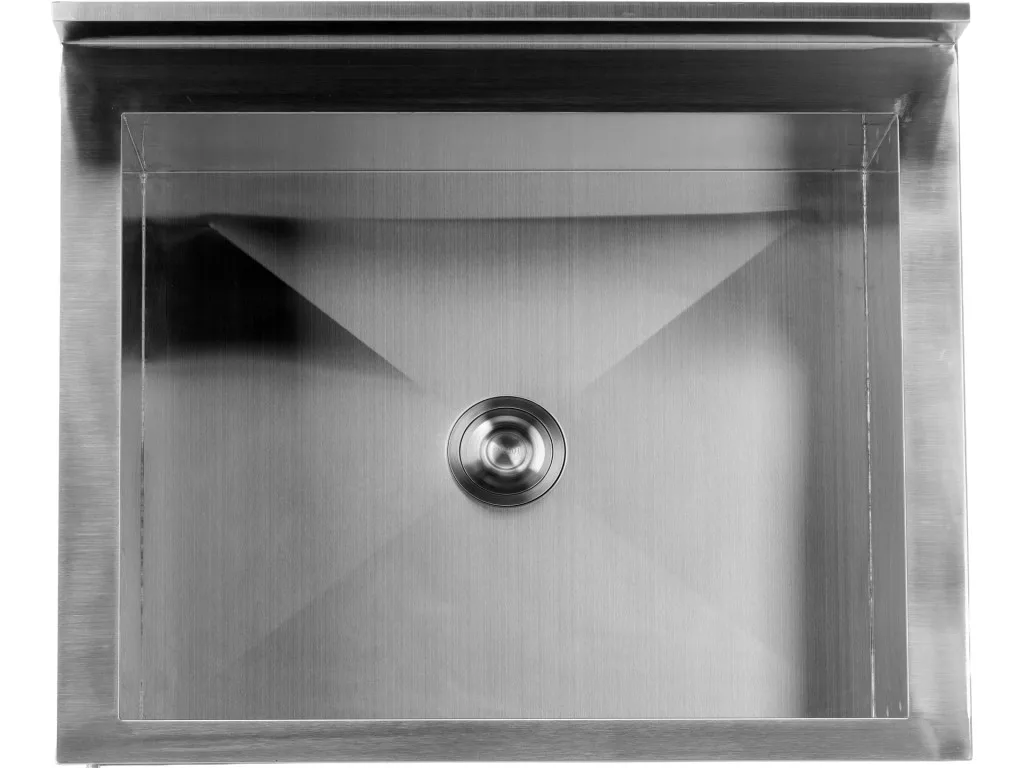 Kialakítás: Egyetlen hatalmas, mélyített mosogatómedence ("basen"), amelynek mélysége általában 300 mm.