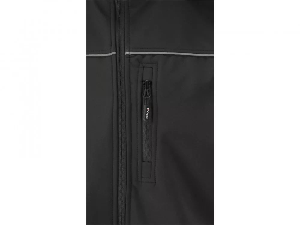 Softshell kabát három zsebbel, vízálló cipzárral és levehető kapucnival. Az anyag egy modern háromrétegű és könnyű poliészter szövet, spandex hozzáadásával, speciális mikrostruktúrával, amely megakadályozza a vízcseppek bejutását, miközben lehetővé teszi az izzadság párolgását vízgőz formájában az anyagon kívülre. A kabát tökéletesen megőrzi a test melegét kényelmes levegőáramlással, és sikeresen helyettesíti a nehéz pulóvert a nehezen lélegző polár anyaggal. A középső réteg, hőre lágyuló poliuretánból készült laminátum, még mérsékelt eső esetén is vízállóságot biztosít.