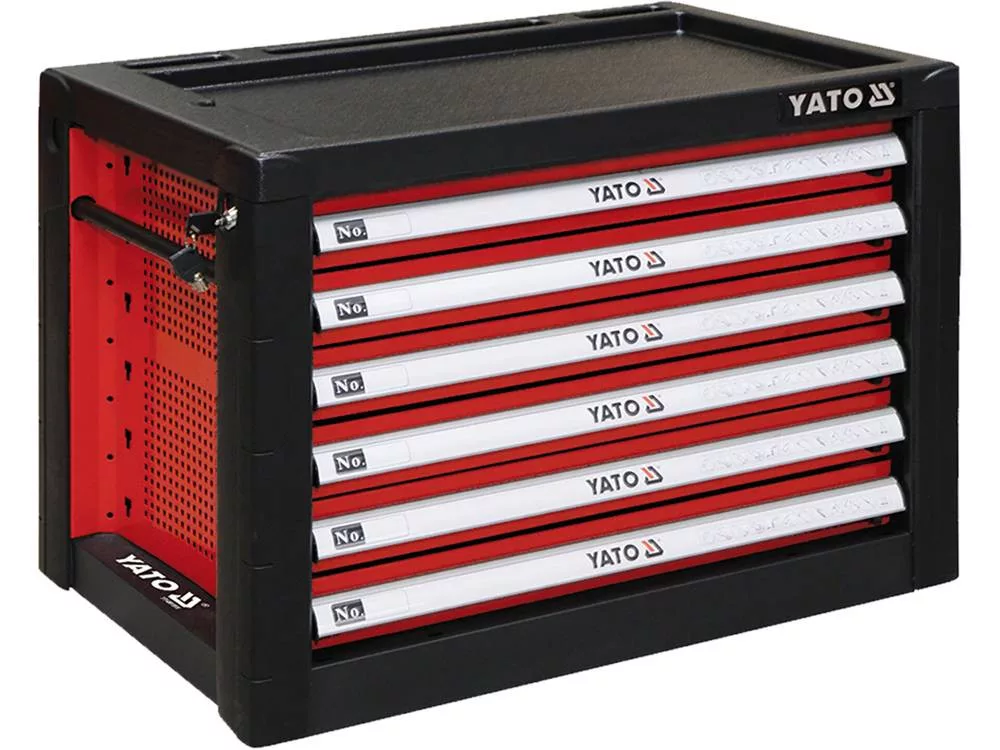 Professzionális munkapadszekrény 6 központi zárható fiókkal felszerelve. Nagy teherbírású, többgolyós mechanizmuson alapuló golyóscsapágyas csúszókkal rendelkeznek.