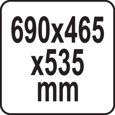 A munkapadszekrény teljes méretei: 690 mm x 465 mm x 535 mm.