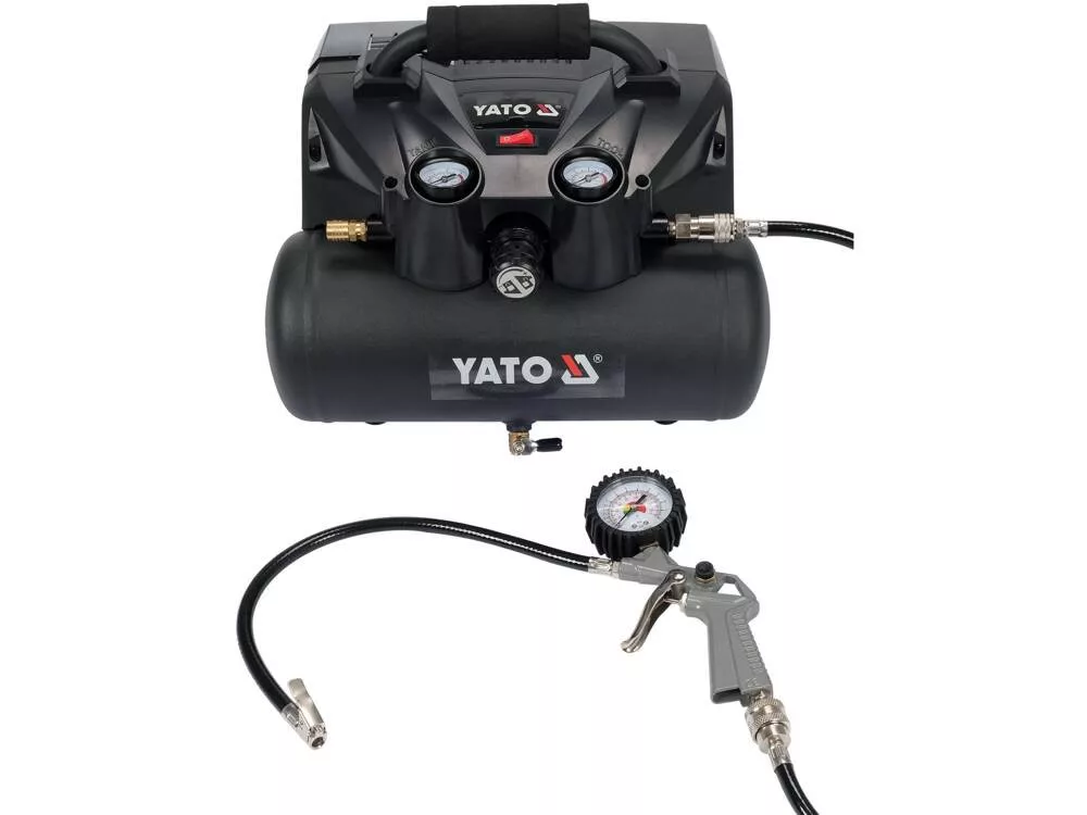 Erőteljes akkumulátoros kompresszor 6 l kapacitással. Hasznos, ha egy mobil eszközre van szükség fújáshoz, pumpáláshoz és tűző- vagy szögbelövőhöz való levegő ellátásához.