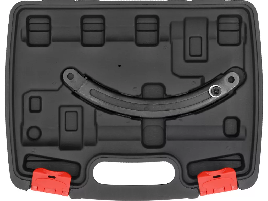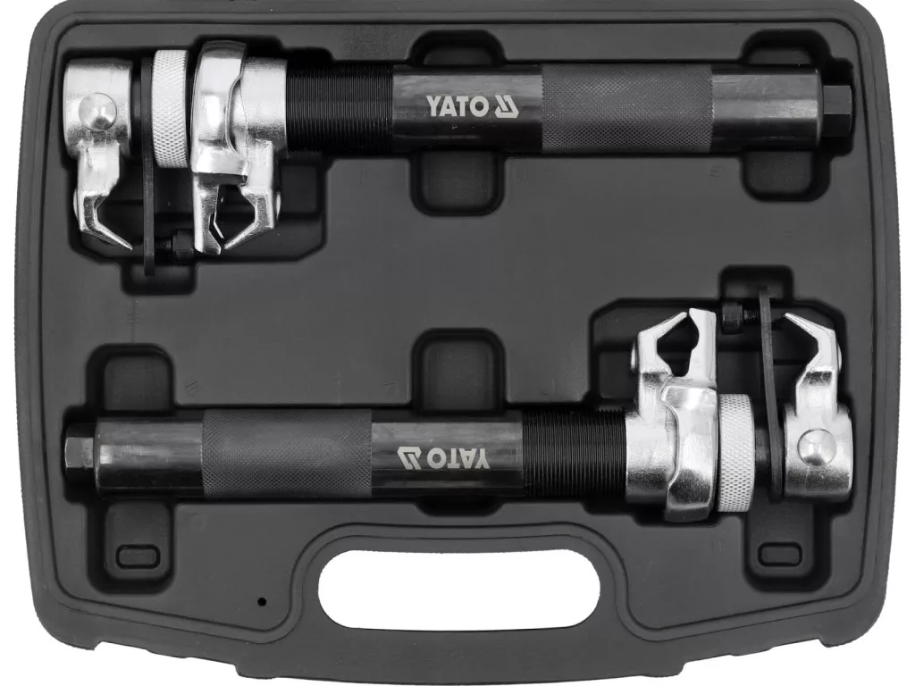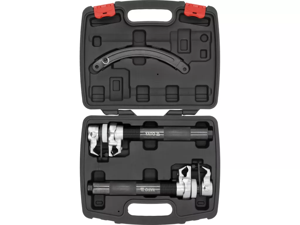 Professzionális rugóhúzó, amely nélkülözhetetlen egy autószerelő műhelyben. Személygépkocsik, teherautók, motorkerékpárok, quadok és mások munkáihoz igazítva. A munka biztonságos a speciálisan kialakított kétkarú fogantyúknak köszönhetően.