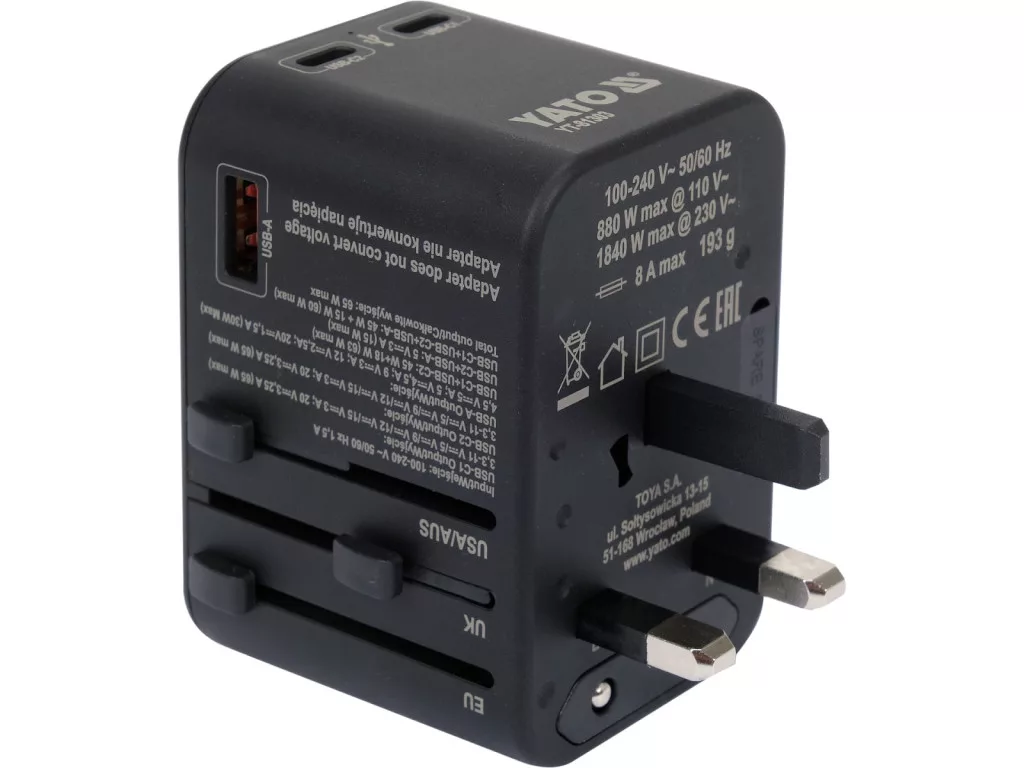 A Yato univerzális utazóadapter nem csak a tengerentúli utazások nélkülözhetetlen terméke, hanem egy kiváló minőségű, több teszten is megerősített paraméterrel rendelkező gyorstöltő,