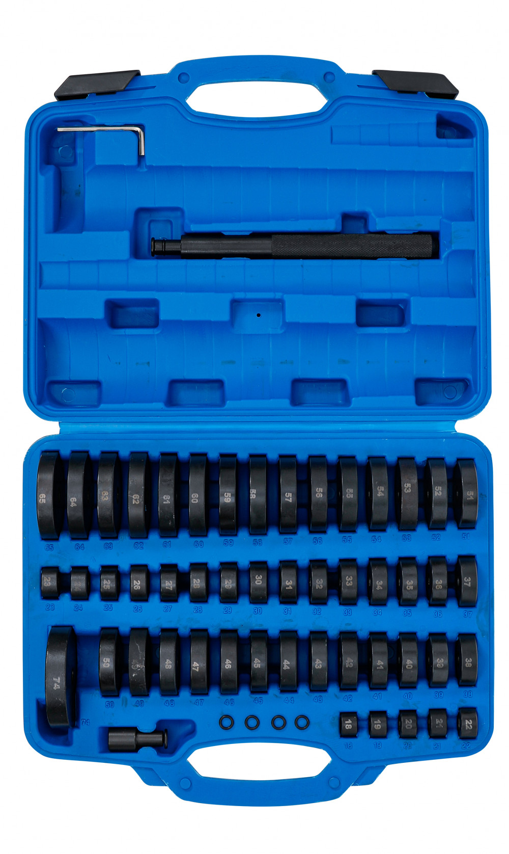- 48 db beszerelő tárcsa, Ø 12 mm-es furattal: 18 - 46 mm közötti méretek, 1 mm-es lépésközzel