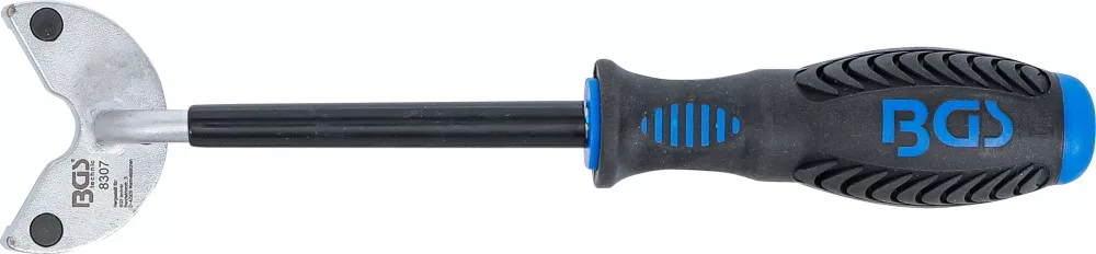 A kulcsban lévő bemélyedés lehetővé teszi a dugattyúrúd szerszámmal történő ellentartást