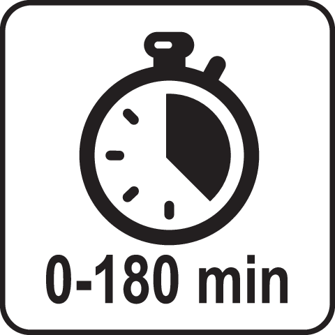 Ezenkívül beállítható tíz hőfokszint 60°C-tól 240°C-ig, minden 20°C-onként. Beépített időzítővel rendelkezik, amelyet 0-tól 180 percig állíthatsz be (0-30 perc minden 1 percen, 30-180 perc minden 10 percen).