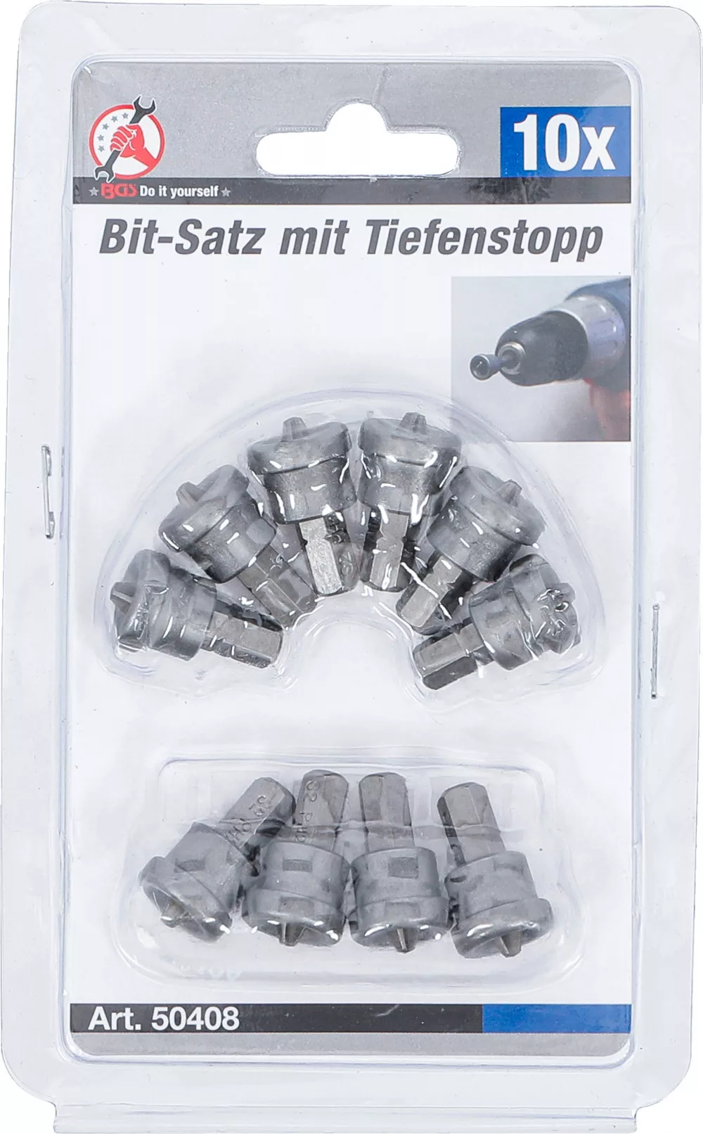 BGS DIY 1/4" Bitkészlet mélységi ütközővel, csavarok süllyesztett behajtásához | gipszkarton falhoz | csillag PH2 | 10 darabos (BGS 50408)