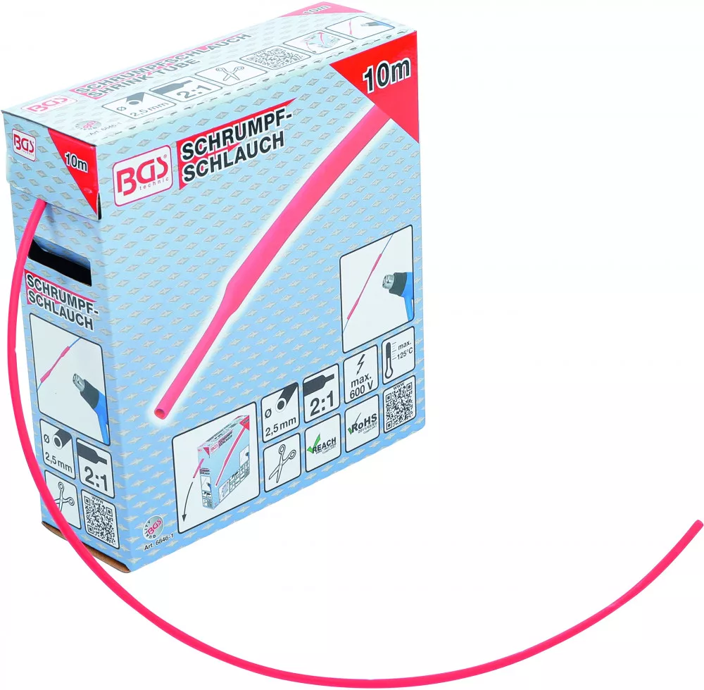 BGS technic Zsugortömlő-doboz | piros | Ø 2,5 mm | 10 m (BGS 6846-1)