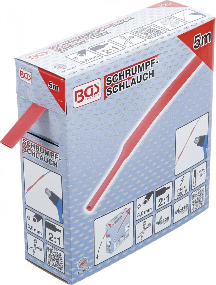 BGS technic Zsugortömlő-doboz | piros | Ø 8 mm | 5 m (BGS 6852-1)