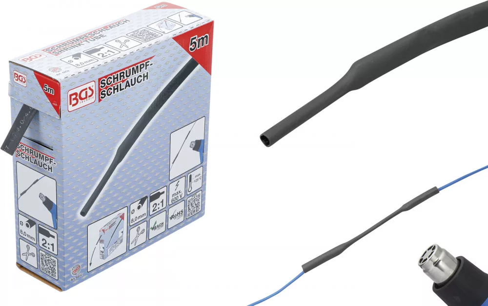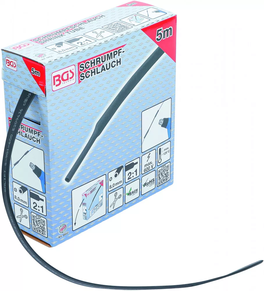 BGS technic Zsugortömlő, dobozban | fekete | Ø 8 mm | 5 m (BGS 6852)