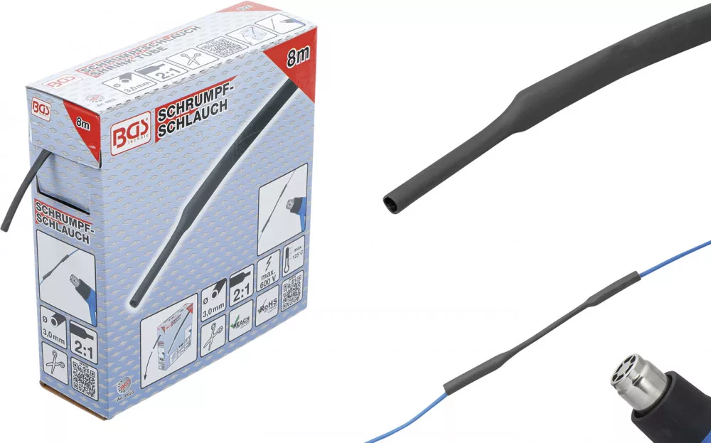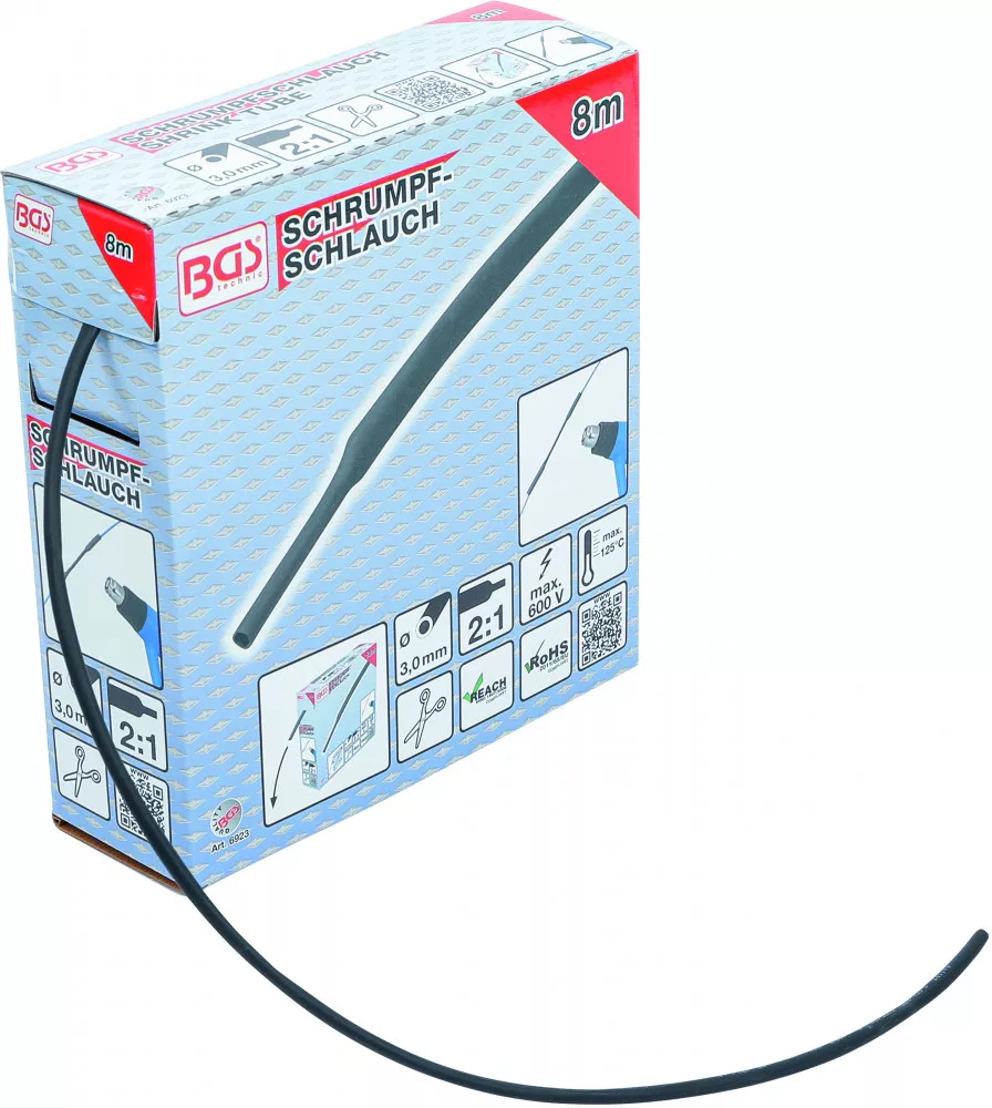 BGS technic Zsugortömlő, dobozban | fekete | Ø 3,2 mm | 10 m (BGS 6923)