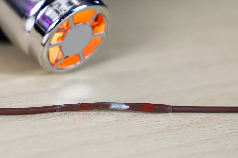 • forró levegővel történő melegítéssel, a forraszanyag ezekben a szigetelő csatlakozókban összeköti a kábelvégeket.
