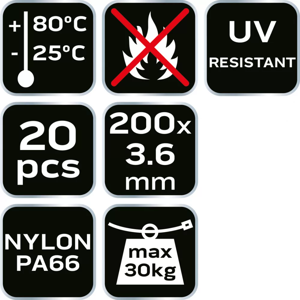 NEO Kábelkötegelő, gyorskötöző, EXTREME, UV álló, fehér, 3,6x200mm, 20db/cs (01-653)