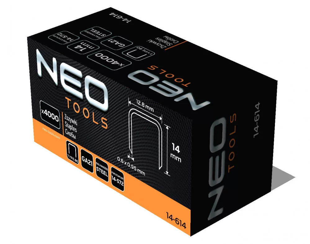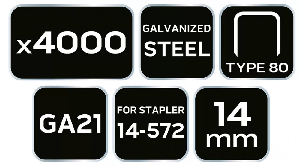 NEO Tűzőkapocs, horganyzott 80-as tipus, pneumatikus tűzőgéphez (14-572), GA21, 14 mm, 4000 db (14-614)