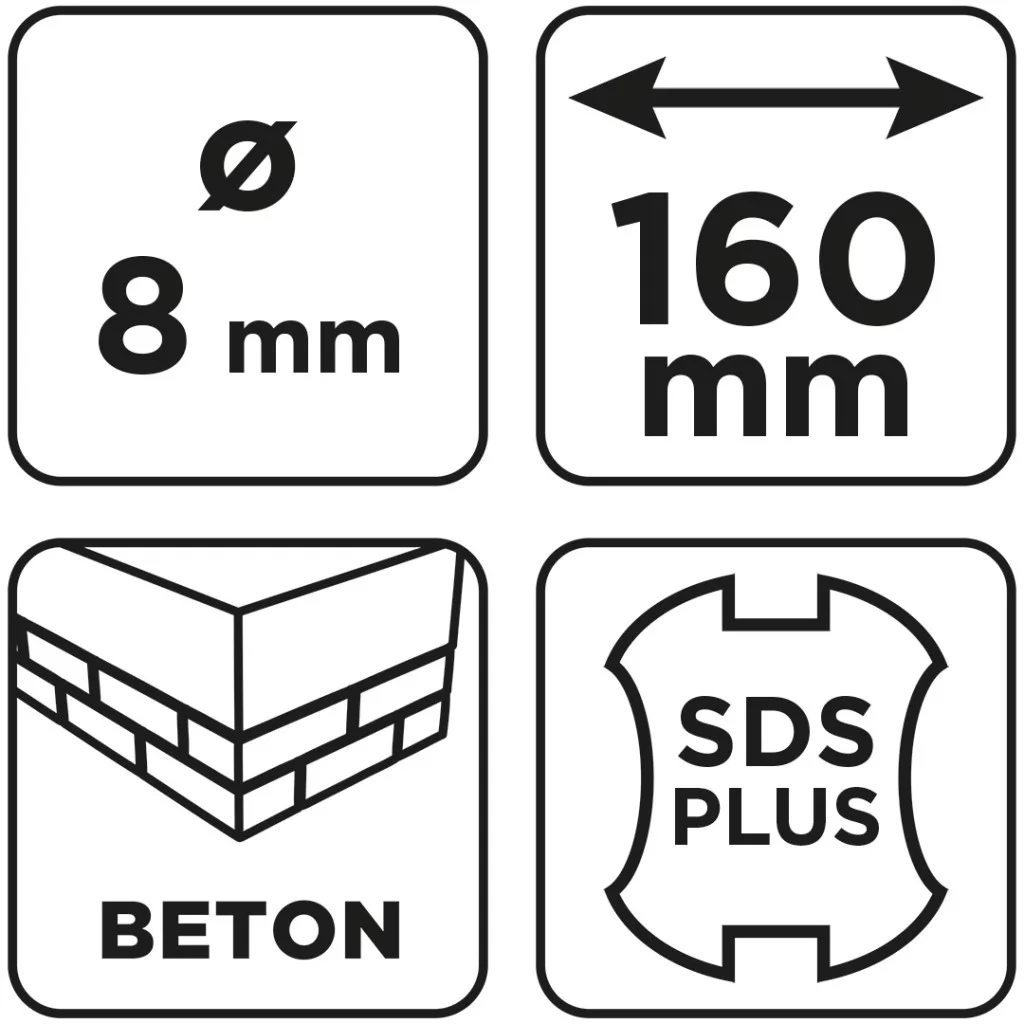 GRAPHITE Betonfúró SDS PLUS, 2 élű, dupla spirálos, 8x160mm (56T109)