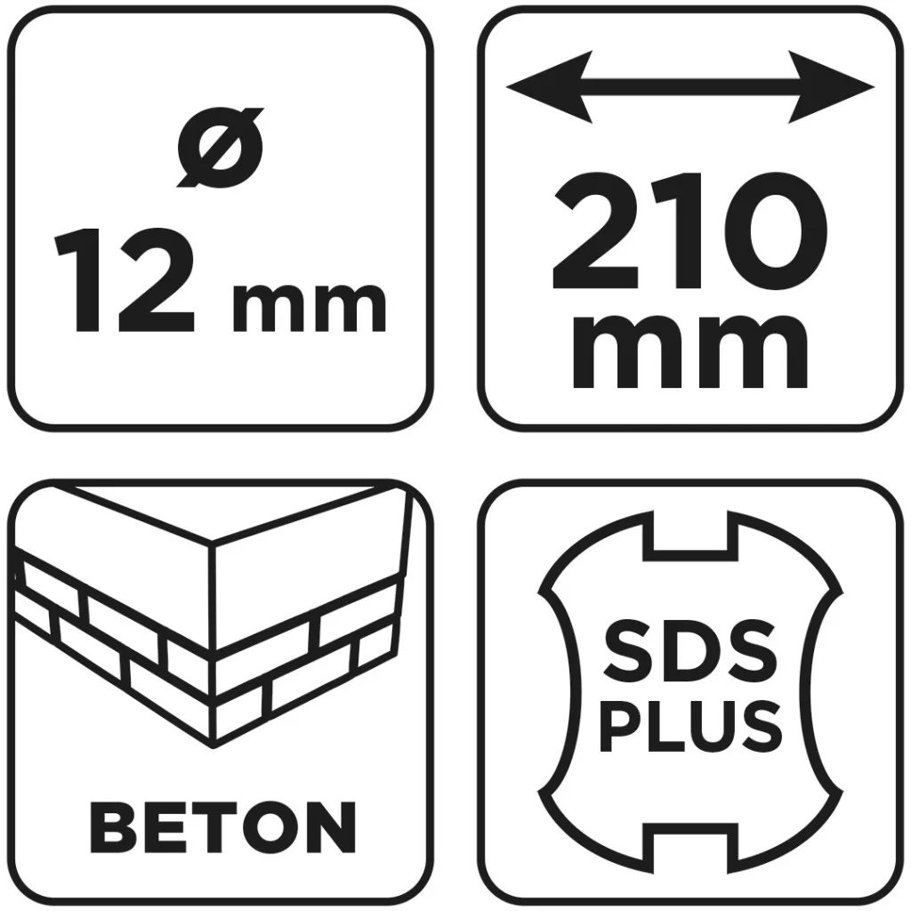 GRAPHITE Betonfúró SDS PLUS, 2 élű, dupla spirálos, 12x210mm (56T125)