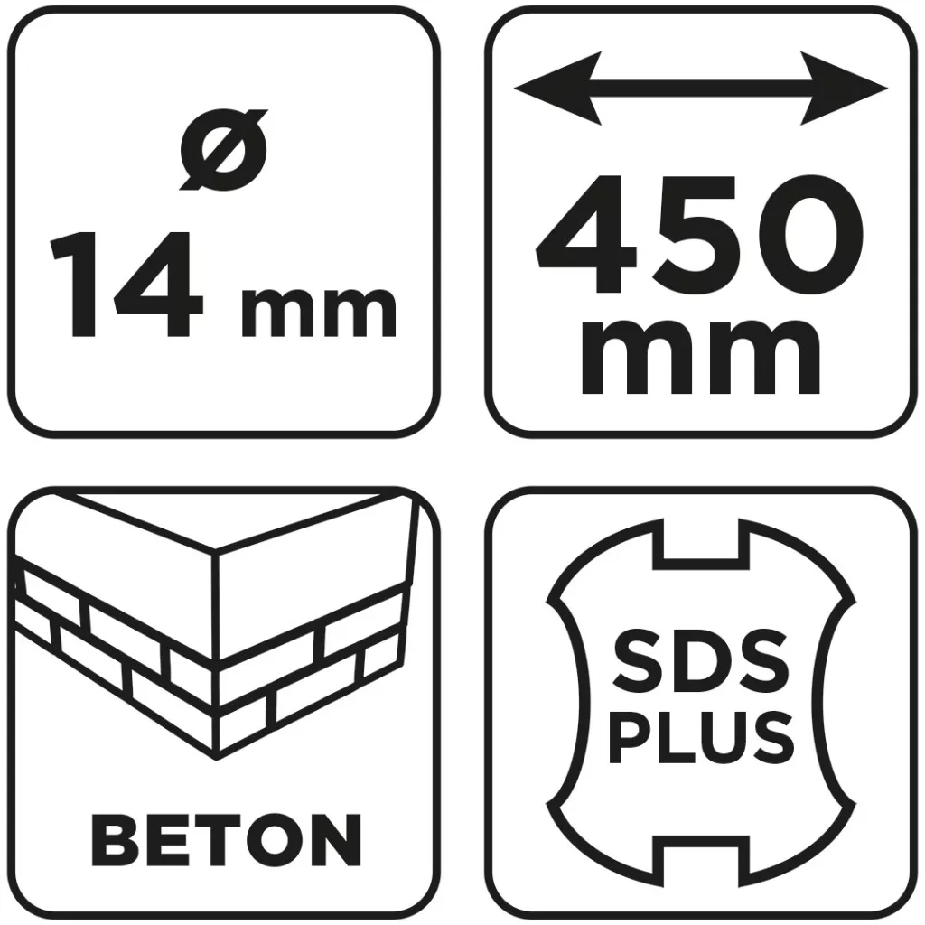 GRAPHITE Betonfúró SDS PLUS, 2 élű, dupla spirálos, 14x450mm (56T137)