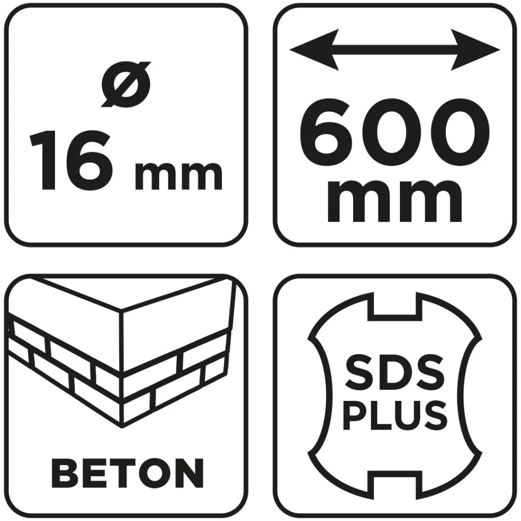 GRAPHITE Betonfúró SDS PLUS, 2 élű, dupla spirálos, 16x600mm (56T144)