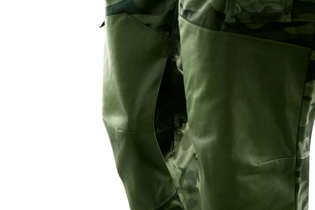 Camo munkanadrág, XXL méret, 60% pamut, 40% poliészter, 255 g/m2, multifunkciós zsebek, megerősített térd térdpárna tartó zsebbel, speciális profilú térdelő, gumizott derék, hármas varrás, azonosító címke, terepmintás, CE tanusítvány