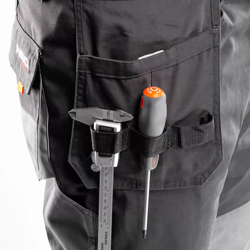 A NEO 2in1 levehető száras munkanadrág.Minden időjárási körülmények között komfortosan használható. Kiváló minőségű anyagokbók készül. A kopásnak kitett helyeken meg van erősítve. A tartósságot növelő tripla varrások és a térdvédőknek kialakított zseb jelentősen megnöveli kényelmességét. A szolid zsebek nagy terhelést is kibírnak, elférnek benne a munka közben szükséges szerszámok. A termék EN ISO 13688:2013 szabvány szerinti kivitelezése és az európai tanúsítványa minőségének garanciája. A NEO márka a professzionális igényeket is kielégíti.