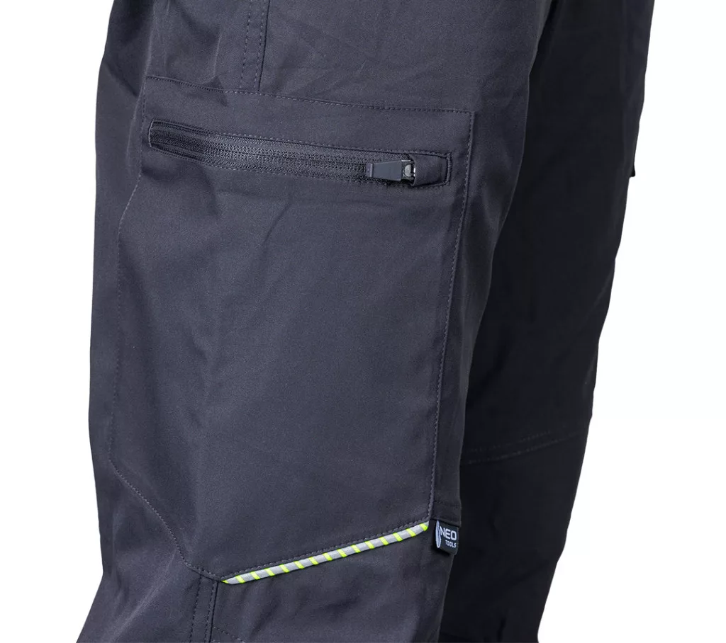 NEO 81-298-1 MUNKÁSNADRÁG, MIX&MATCH, SZTRECCS ANYAG, 135G/M2, SZÜRKE. A Mix&Match sorozathoz tartozó, strapabíró nadrág, amely lehetővé teszi a munkaruhák tetszés szerinti összeállítását.Rugalmas és kényelmes viseletű, 100% poliészterből készült, 135 g/m2 súlyú sztreccs anyagból. Szürke, univerzális színüknek köszönhetően számos feladatra alkalmasak. A fényvisszaverő betétek viszont modern megjelenést kölcsönöznek nekik, és növelik a sötétedés utáni használat biztonságát. A NEO TOOLS munkanadrágok további fényvisszaverő elemekkel rendelkeznek a profilozott térdeken. A névtábla lehetővé teszi a személyre szabást professzionális környezetben. A nadrág megfelel a CE EN ISO 13688:2013 szabványnak, és felbecsülhetetlen értéket képvisel a mindennapi használatban a szakemberek és a barkácsolás szerelmesei számára.