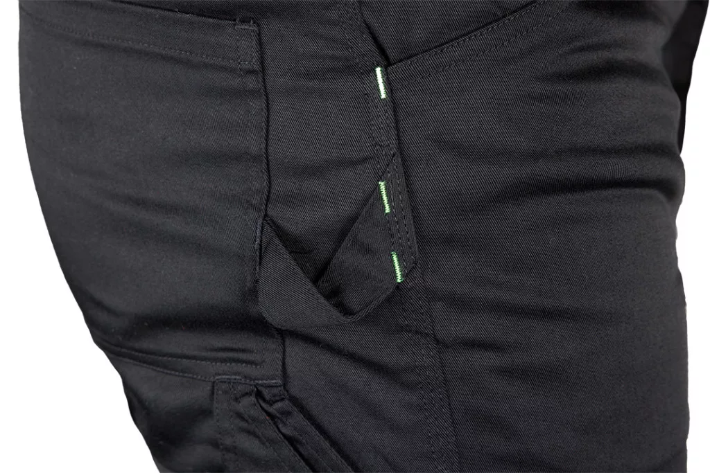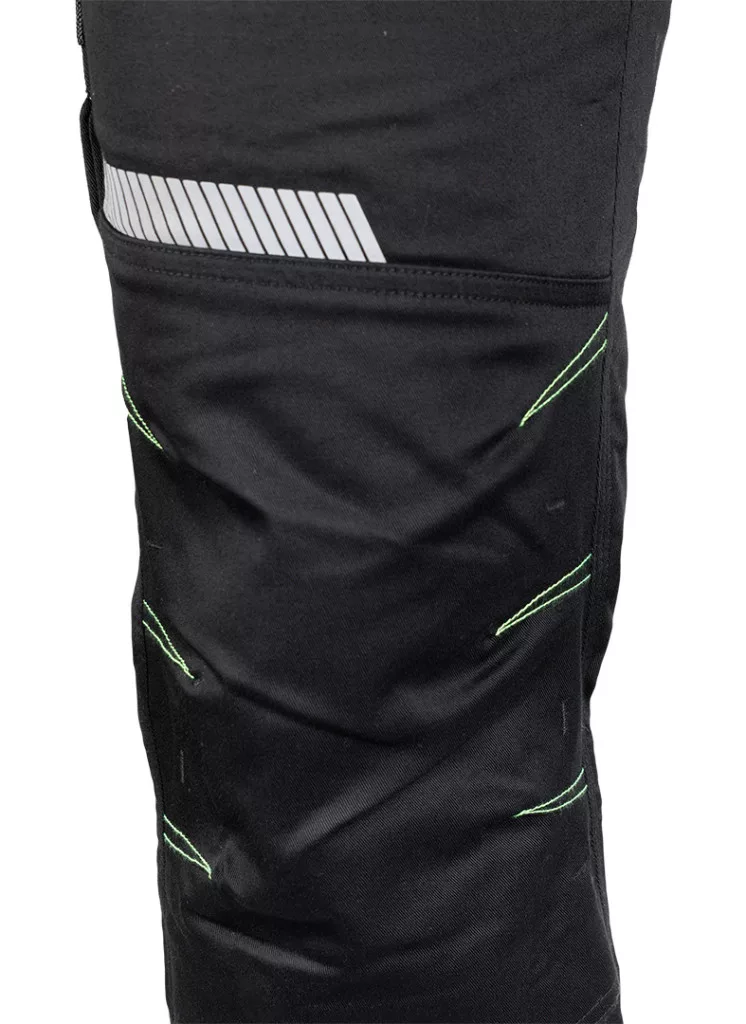 NEO Munkásnadrág Mix&Match, 240g/m2, 58% poliészter, 40% pamut, 2% elasztán külső zsebekkel, profilozott térdbetétekkel,névtábla tartóval, fényvisszaverő betétekkel, fekete. A Mix&Match sorozathoz tartozó nadrágmodell, amelyet az egyes munkaruhadarabok kényelmes kombinálására terveztek. A nadrágot 240 g/m2 súly és anyagösszetétel jellemzi: Az anyag összetétele: 58% pamut, 40% poliészter és 2% elasztán. Szilárd hármas varrással, térdvédő zsebbel és profilozott térdekkel rendelkezik, amelyek hozzájárulnak a ruhadarab tartósságához és kényelméhez. A NEO TOOLS nadrág többféle tárolási lehetőséggel rendelkezik - szerszámhorgokkal és többfunkciós zsebekkel. A térd felett található fényvisszaverő nyomtatás további megkülönböztető jegye ennek a modellnek, akárcsak a praktikus azonosító címke. A NEO TOOLS márkájú munkanadrágok az EN ISO 13688:2018 szabványnak megfelelően CE tanúsítvánnyal rendelkeznek.