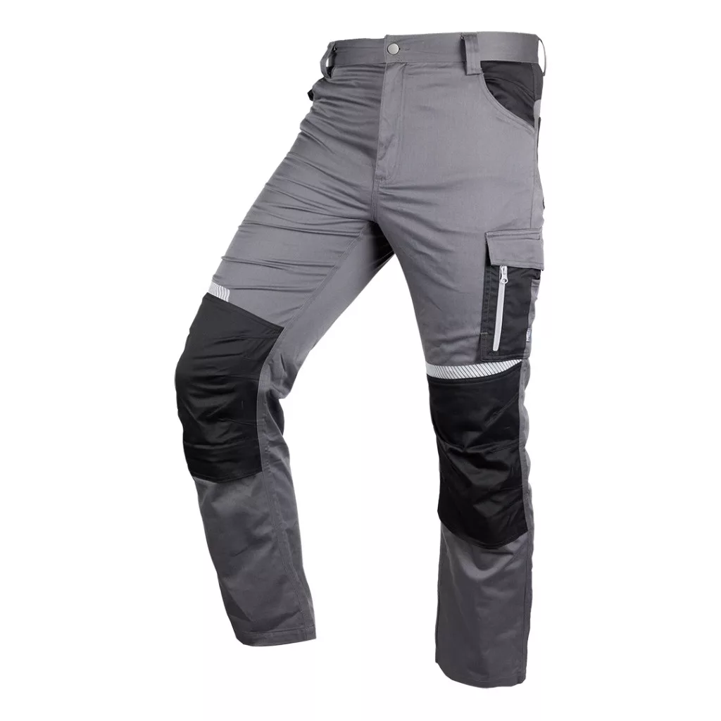 NEO Munkásnadrág Mix&Match, 240g/m2, külső zsebek, profilozott térdbetét, fényvisszav. betétek, szürke-fek., XS (81-351-2-XS)