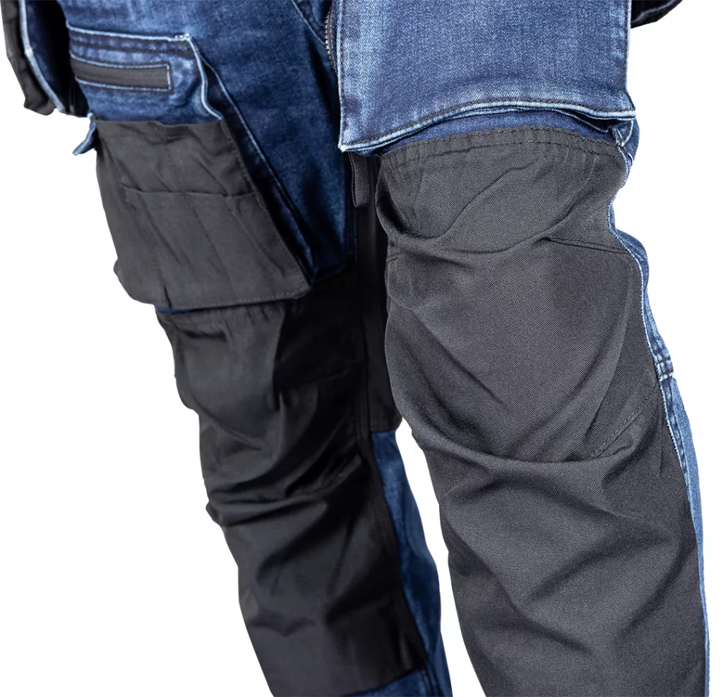 NEO Farmer munkásnadrág, Denim, 82% pamut, Oxford szövet, Cordura betétek, cippzáras zsebek, kék-fekete, XL (81-361-1-XL)