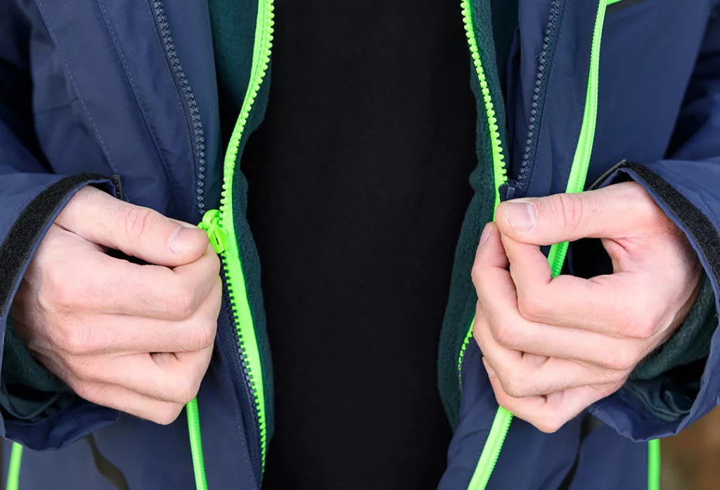 Munkakabát, 3 az 1-ben, PREMIUM, külső anyag 100% poliamid, bélés 100% poliészter, 10000mm vízálló, 8000g/m2/24h lélegző, polár, 100% poliészter bolyhosodásgátló bevonattal, 3 az 1-ben szélálló kabát, polár pulóver, kabát polár béléssel, kapucnikerület szabályozással, szilikon heveder a tépőzáras ujjak kerületének beállításához, oldalsó szellőzés, neon színű logóval, neon színű vízálló cipzárak, tágas cipzáras zsebek, belső névtábla, fényvisszaverő nyomatok, fényvisszaverő logó, egyedi tervezés, CE.