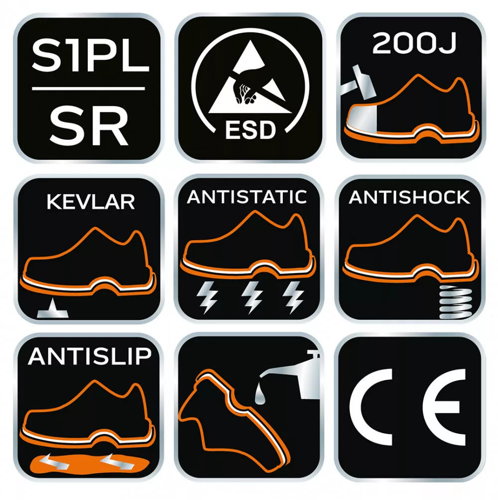 Az S1PL SR félcsizma, ESD, kompozit lábfej, kevlár talpbetét, 39-es méret, 82-163-41 a NEO TOOLS-tól S1PL SR félcsizma, kompozit lábfejjel és praktikus kevlár szúrásgátló talppal ellátva. A lábbeli felsőrésze hálóból és mikroszálból, bélése kötött hálóból, talpa PU/PU, talpbetétje pedig EVA habból készült. A lábbelit antiektrosztatikus tulajdonságok jellemzik, szűk elektromos ellenállás-tartományban (0,75 MΩ és 35 MΩ között) - elvezeti az elektromos töltéseket. A cipő az S1PL SR védőkategóriába tartozik, ahol az SR az SLS bevonatú kerámia talajon és a glicerinnel bevont acél talajon való csúszásállóságot jelenti. A NEO TOOLS munkacipő lábujjhegye viszont védelmet nyújt a 200J energiának megfelelő energiájú ütésekkel szemben. A lábbeli szúrásálló, de ellenáll az olajnak, benzinnek és más szerves oldószereknek is. A sarokrészen energiaelnyeléssel és rugalmas, a lábfejhez jól alkalmazkodó felsőrésszel rendelkezik. A bakancsot légáteresztő képesség jellemzi. A következő szakterületek iparágai számára ajánljuk: elektronika, számítástechnika, vegyipar, autóipar, gyógyszeripar, optika, élelmiszeripar, repülés és petrolkémia. A NEO TOOL félcsizmák CE tanúsítvánnyal rendelkeznek.