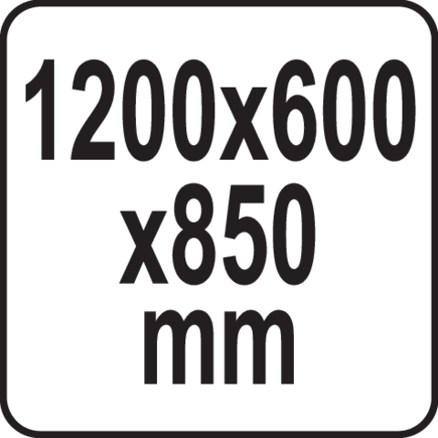 Csavarozott központi asztal polccal a YATO-tól, méretei 1200 x 600 x 850 (szélesség, mélység, magasság).