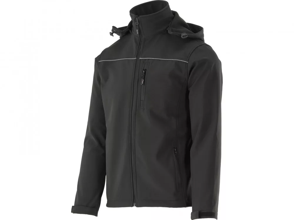 Softshell kabát három, vízálló cipzárral záródó zsebbel és levehető kapucnival. Az anyag egy modern, háromrétegű és könnyű poliészter szövet spandex hozzáadásával, amely speciális mikrolyukakkal rendelkezik, amelyek megakadályozzák a vízcseppek bejutását, miközben lehetővé teszik a verejték elpárolgását a vízgőz formájában az anyag külső részére. A kabát tökéletesen megtartja a test melegét kényelmes légáramlással, és sikeresen helyettesíti a nehéz, alig lélegző polár pulóvert. A középső réteg termoplasztikus poliuretán laminátból készült, amely mérsékelt eső esetén is vízállóságot biztosít. Alapadatok: anyag: 96% poliészter, 4% spandex, súly: 320 g/m², munkaszervezés: vízálló cipzáras zseb a bal mellkason, két vízálló cipzáras zseb a derékrészen. Vízállóság: 8000 mm (az anyag négyzetmétere 8 m magas vízoszlop nyomását bírja ki - 8000 mm), lélegzőképesség: 3000 MVP (kb. 3000 g víz/izzadság párolog el 1 m² anyagról 24 óra alatt). Azonnali ujjak, tépőzáras mandzsettákkal, az alsó rész szélességének állítása blokkolóval. A síruházatot használók által elismert kényelem és a munkaruházat funkcionalitása megfelel a (EU) 2016/425 rendelet követelményeinek és kategóriájának. Vízállóság: A síruházatban eddig leggyakrabban használt paraméter kifejezi az anyag négyzetméterének ellenállását a milliméteres vízoszlop nyomásával szemben. 0 - 1500 mm - szinte nulla vízállóság, száraz körülmények között végzett munka, 1500 - 5000 mm - vízállóság enyhe eső és gyenge hó esetén, 5000 - 10,000 mm - vízállóság mérsékelt eső és hó esetén, 10,000 - 15000 mm - vízállóság heves eső és hó esetén nagy szél nélkül. Lélegzőképesség: Más szóval, a páraképesség azt jelenti, hogy az anyag képes a verejtéket gőz formájában kivezetni az anyag külső részére. Minél magasabb a paraméter, annál hatékonyabb a levegőáramlás. Az értékek 2000 - 5000 MVP között kompromisszumot jelentenek a test melegének megőrzése és a mérsékelt fizikai aktivitás mellett végzett munka kényelme között, például építési területen végzett munka során.